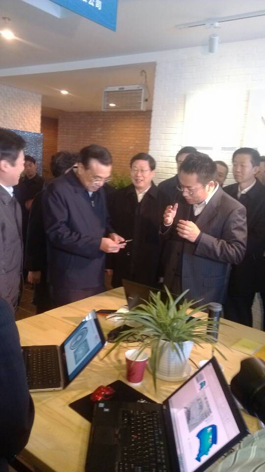 图2:快友世纪CEO林森跟李克强总理演示移动广告